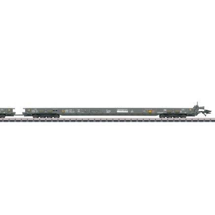 Doppel-Taschenwagen der Bauart SdggmrssS269 (T3000e) der VTG AG. Das Modellerscheint mit unterschiedlichen Beladungen und Betriebsnummern bei Märklin und TRIX